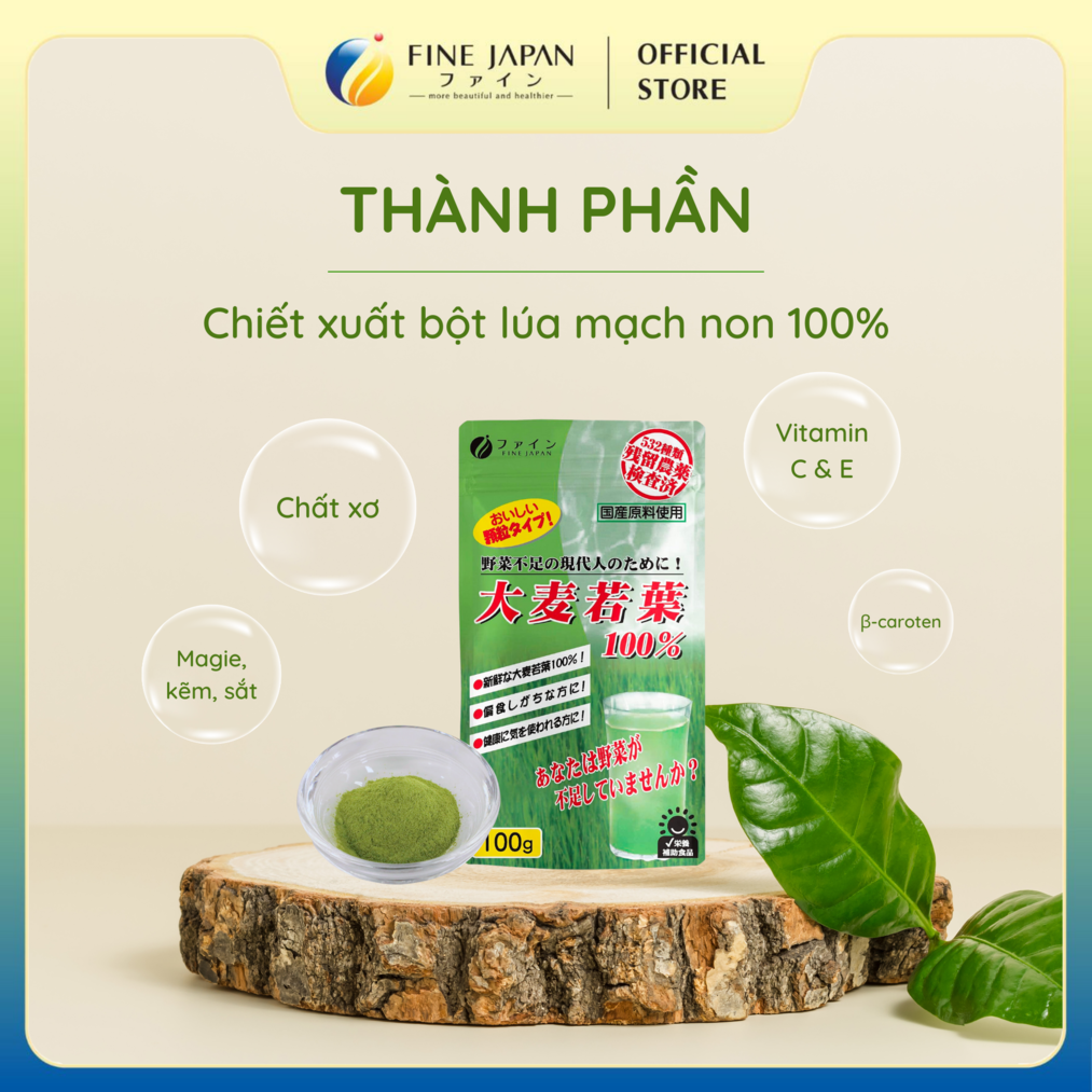 - Chiết xuất bột lúa mạch non 100% sản xuất tại Nhật bản, đã được nghiền nhỏ dễ dàng sử dụng