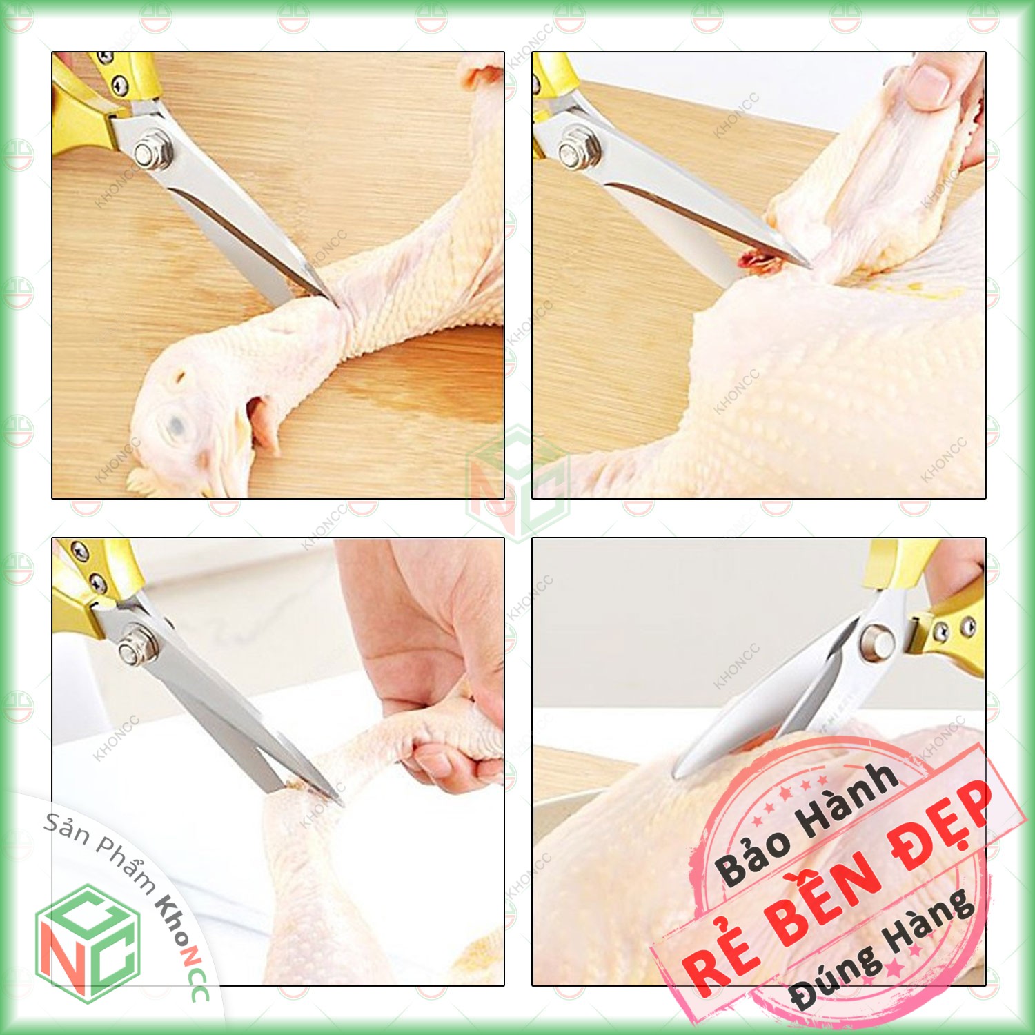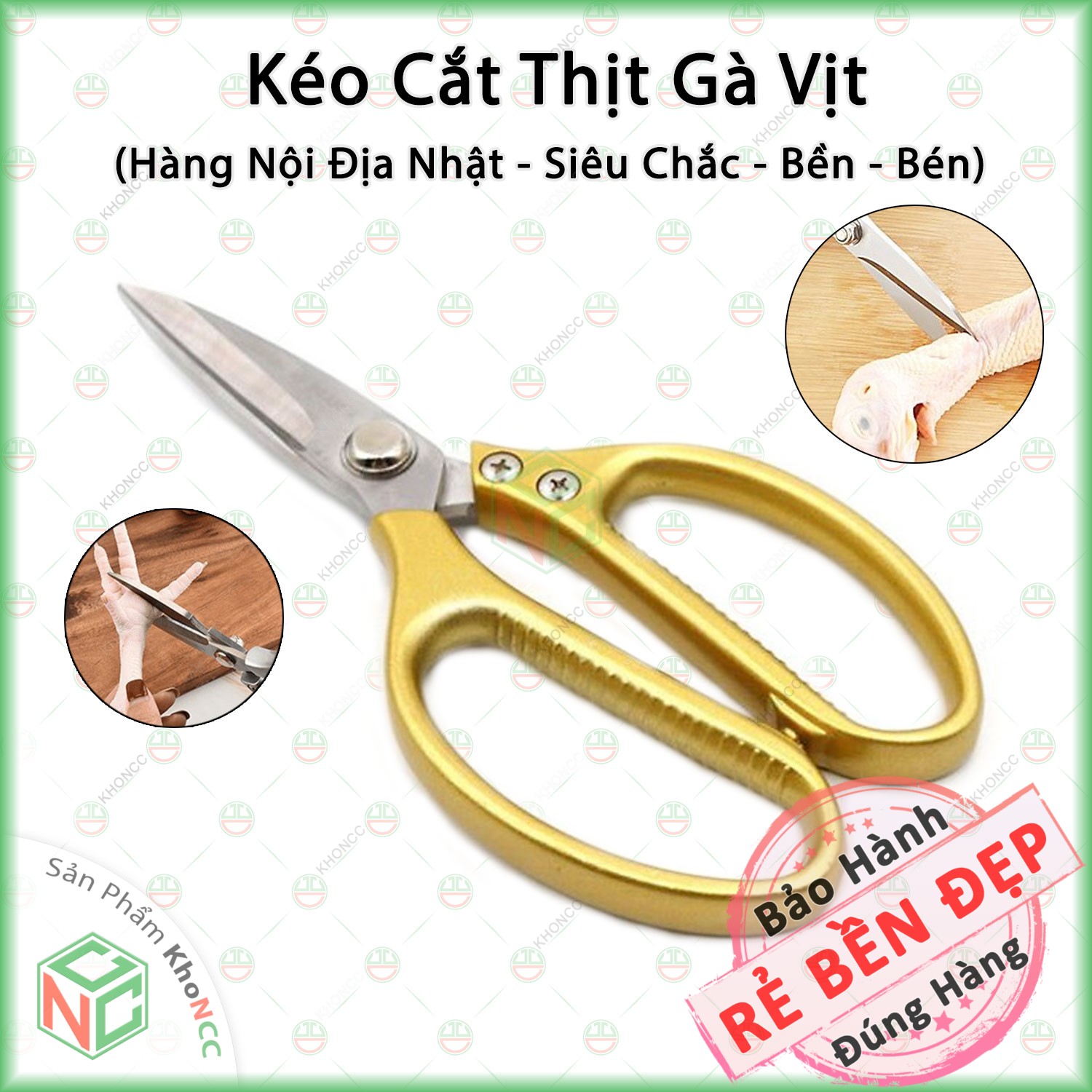 (Cắt Mượt) Kéo Làm Bếp Đa Năng Siêu Phẩm Siêu Sắc KhoNCC Hàng Chính Hãng - Kéo Cắt Gà, Cắt Vịt, Cắt Thịt, Cắt Rau Củ Quả - KLM-KCTNDN (Vàng,Bạc)