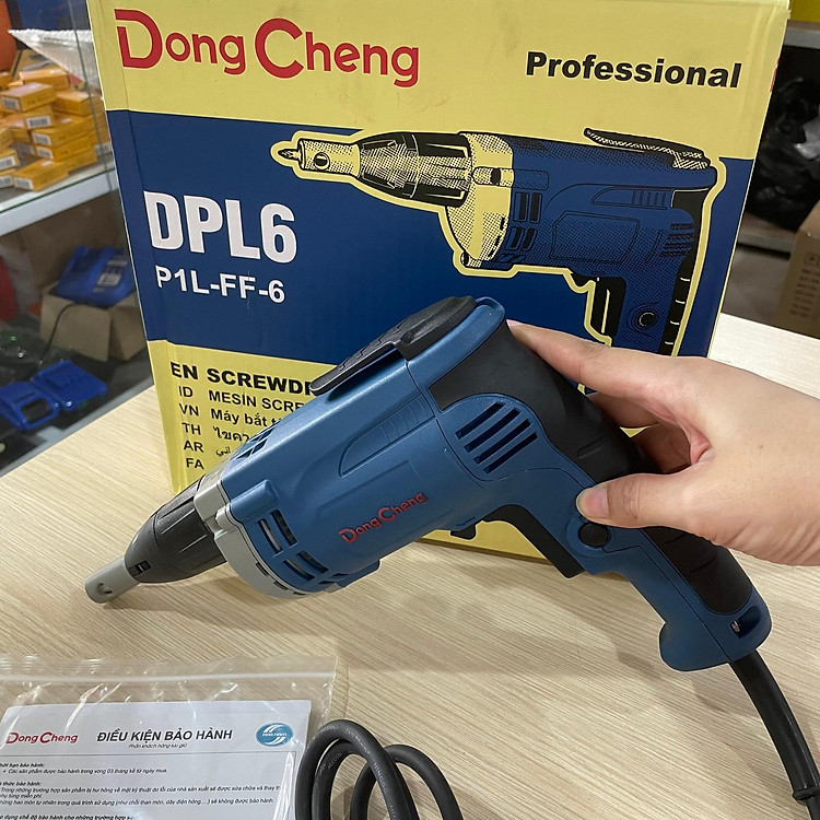 Máy bắt vít Dongcheng DPL6 có tính năng đảo chiều, tay cầm bọc cao su chống trượt. Dongcheng DPL6 thiết kế thêm móc gài ở đỉnh máy giúp bạn dễ dàng di chuyển khi làm việc ở trên cao.