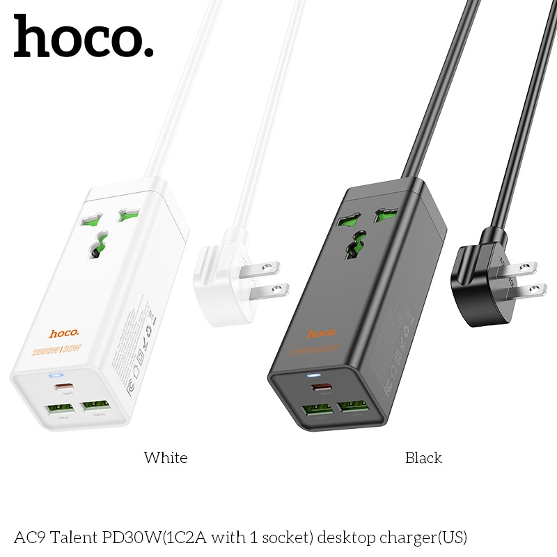 Ổ cắm điện đa năng sạc nhanh PD 30W cổng typeC + QC18W có 2*USB và 1*Type-C có 1 lỗ cắm tải 2500W dây dài 1.5m AC9 - Hàng chính hãng