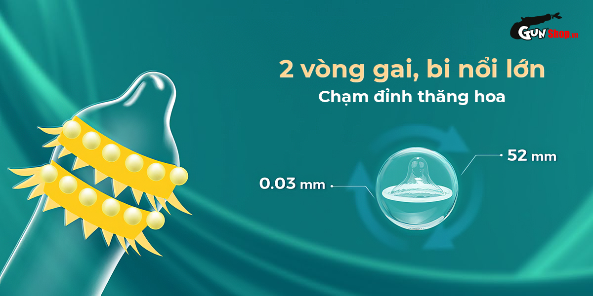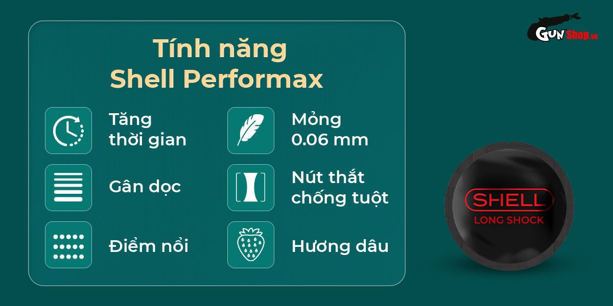 ✪ Quy cách: Mỗi hộp gồm 1 bao 2 vòng gai, bi nổi lớn và 1 bao Shell Performax