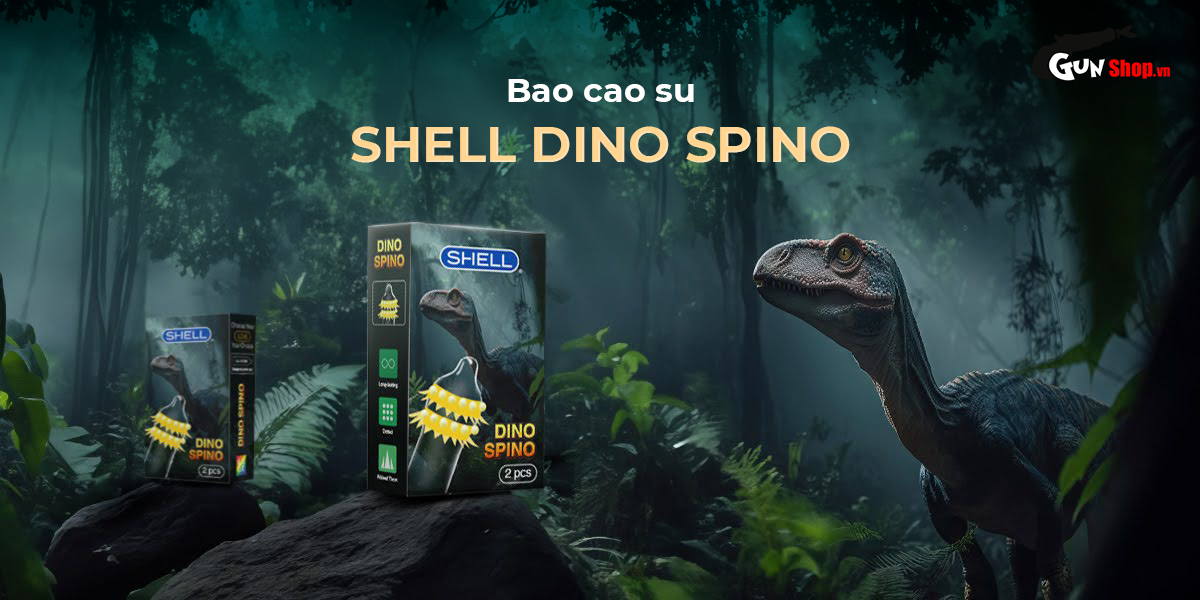 ✪ Đặc điểm: Với 1 chiếc bao cao su Dino Spino 2 vòng gai, bi nổi lớn siêu kích thích + 1 chiếc bao cao su Shell Performax kéo dài, gân gai.
