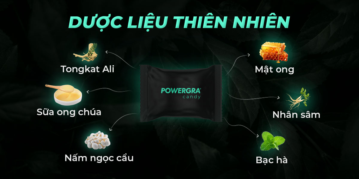 ✪ Thành phần: Tongkat ali, mật ong, nhân sâm, sữa ong chúa, cao hải mã, cao dâm dương hoắc, nấm ngọc cẩu, bạc hà.