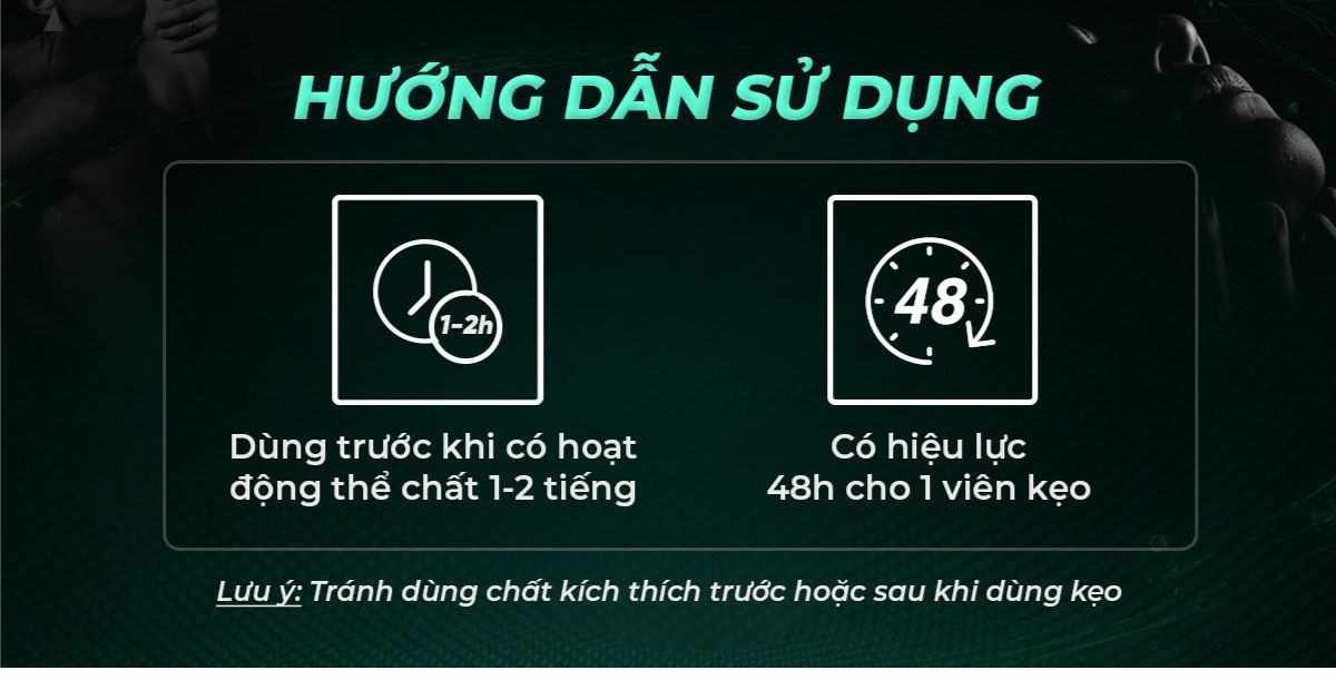 ✪ Cách dùng: Dùng trước khi có hoạt động thể chất tối thiểu 1 tiếng, 2 ngày/ 1 viên.