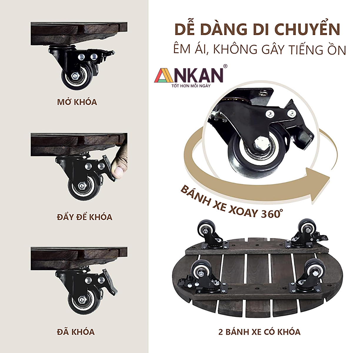 Mua Đế Lót Chậu Cây Có Bánh Xe Cao Cấp ANKAN, Tròn Màu Xám Đen R35cm, Tải trọng 150 Kg, Di Chuyển Chậu Cây Êm Ái, Không Ồn giá rẻ nhất ở đâu?Giới thiệu Đế Lót Chậu Cây Có Bánh Xe Cao Cấp ANKAN, Tròn Màu Xám Đen R35cm, Tải trọng 150 Kg, Di Chuyển Chậu Cây Êm Ái, Không Ồn