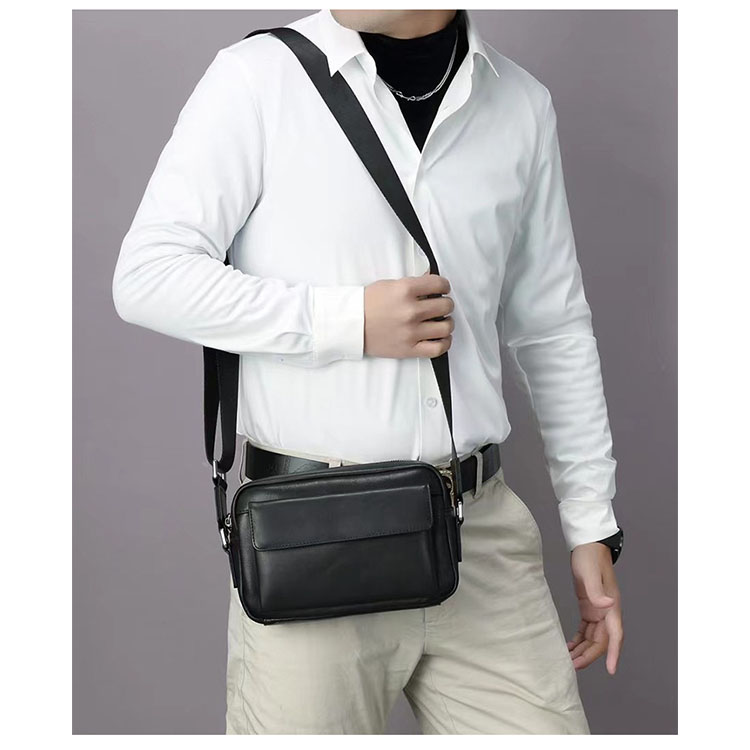 Túi đeo chéo nam ngang nhỏ gọn cao cấp BHM2030 Khá tiện dụng với thiết kế hình hộp chữ nhật gọn gàng cùng màu đen đơn giản dễ dàng kết hợp mọi phong cách thời gian.