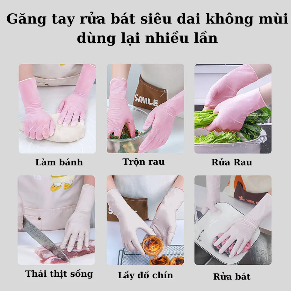 - Đa năng: găng tay cao su dùng để rửa chén, nấu ăn, giặt giũ hoặc vệ sinh nhà cửa