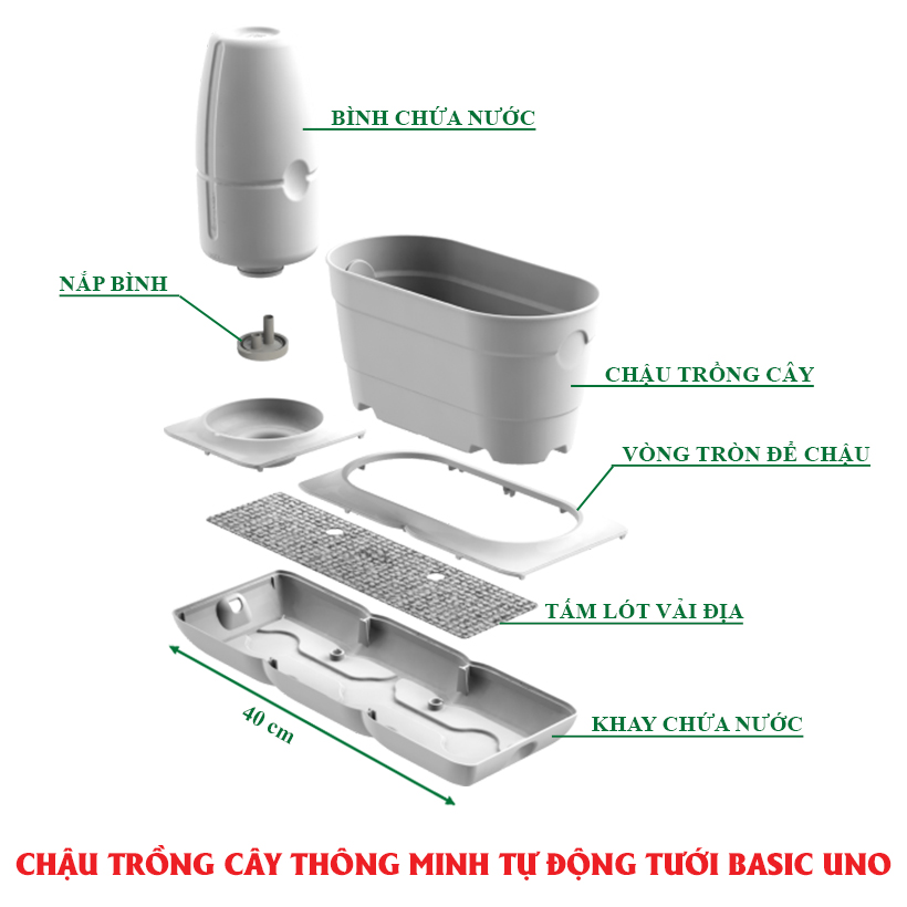 | Model | chậu trồng cây thông minh tự động tưới Basic Uno |