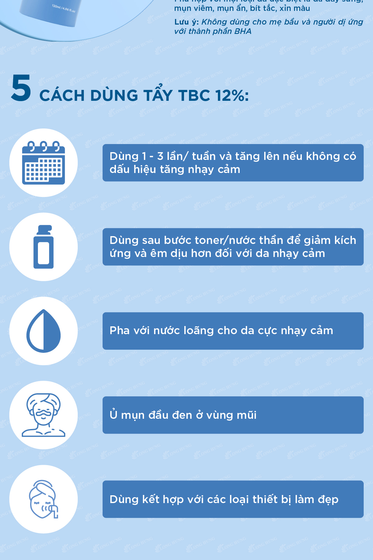 - Lưu ý: Tránh tiếp xúc với mắt và vùng da nhạy cảm. Chống nắng đầy đủ. Cảm giác châm chích có thể xuất hiện trong khoảng thời gian ngắn. Ngưng sử dụng và thăm khám với bác sĩ nếu tình trạng châm chích kéo dài.