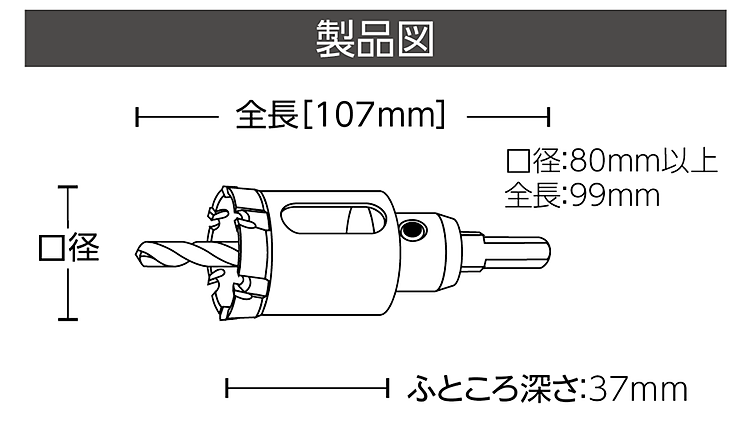Khoan sâu hiệu quả: 35 mm (Chiều dài thân: 37 mm)