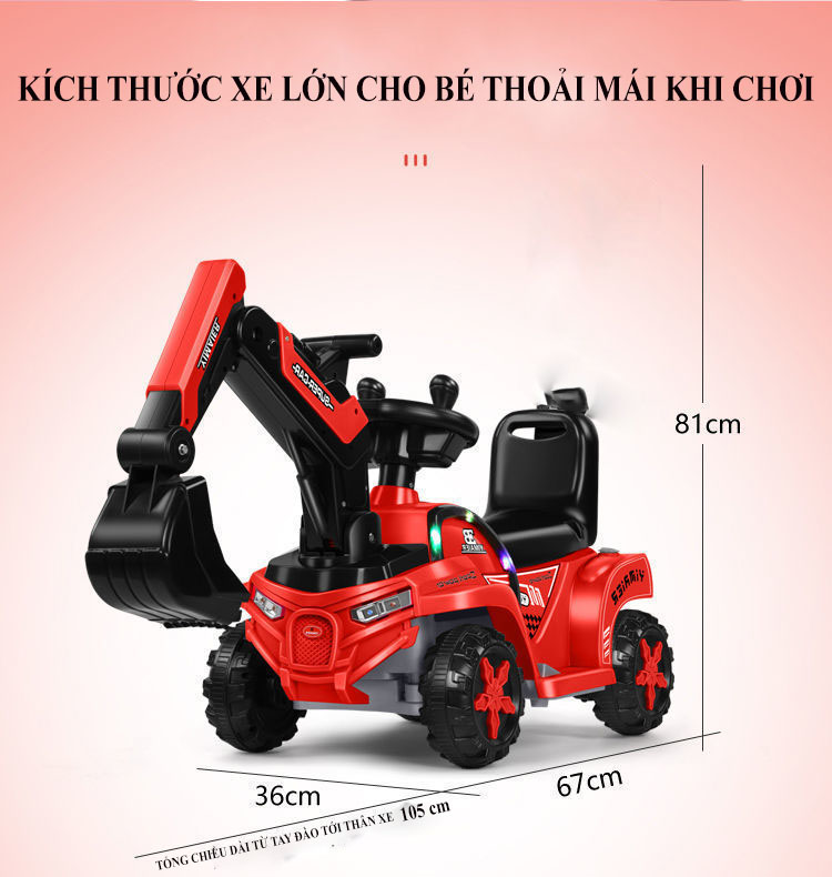 Kích thước xe xúc điện phù hợp cho bé chơi cả trong nhà lẫn ngoài trời