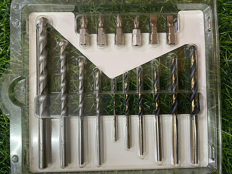 - Bộ 16 mũi khoan kim loại và mũi bắt vít gồm