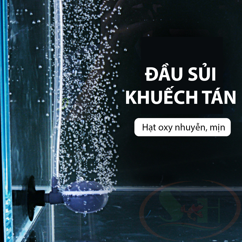* Lắp ống oxy và tiến hành mở máy bơm, đặt đầu sủi lơ lửng trong bể và tiến hành quan sát , xoay chỉnh phần nắp sủi đến khi đạt được nhu cầu.
