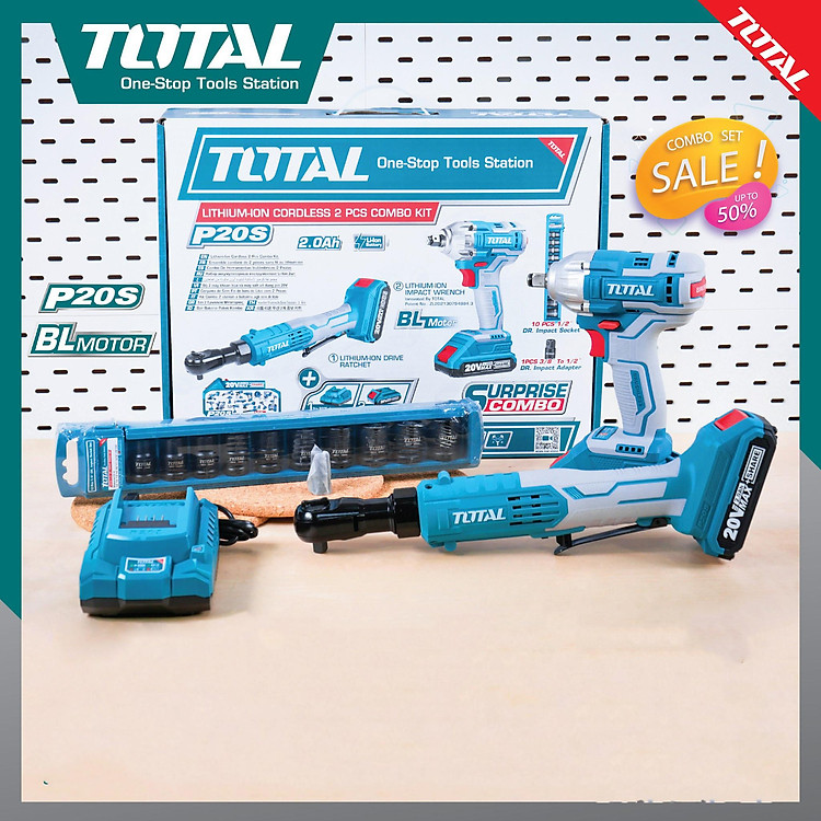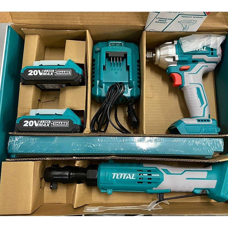BỘ COMBO MÁY SIẾT BULOONG TIWLI2038 & TDRLI206015 DÙNG PIN 20V (2 pin 20V -2.0Ah + sạc) TOTAL TOSLI23043 - HÀNG CHÍNH HÃNG