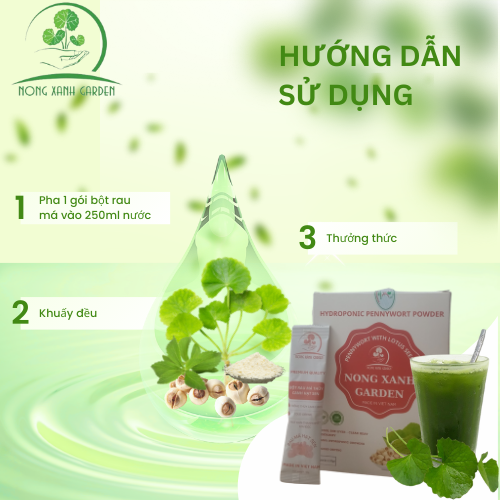 | Hướng dẫn sử dụng | B1: Cho một gói bột rau má thủy canh hạt sen vào 250ml nước
