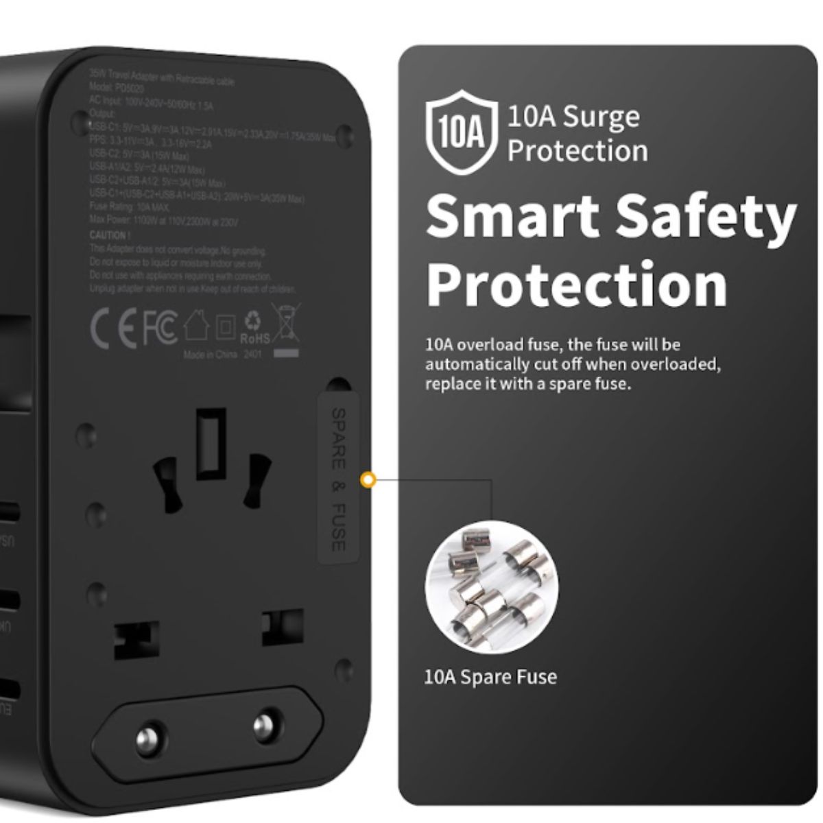 -Củ sạc được trang bị hệ thống bảo vệ an toàn đa lớp, bao gồm: