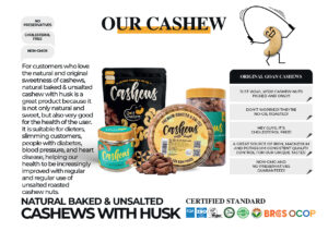 * Duy nhất và chỉ có hạt điều size A180 được chọn lọc, chế biến theo tiêu chuẩn Quốc tế của Hiệp Hội Bán Lẻ Anh Quốc – BRC Food, US FDA và chứng nhận VSATTP Việt Nam