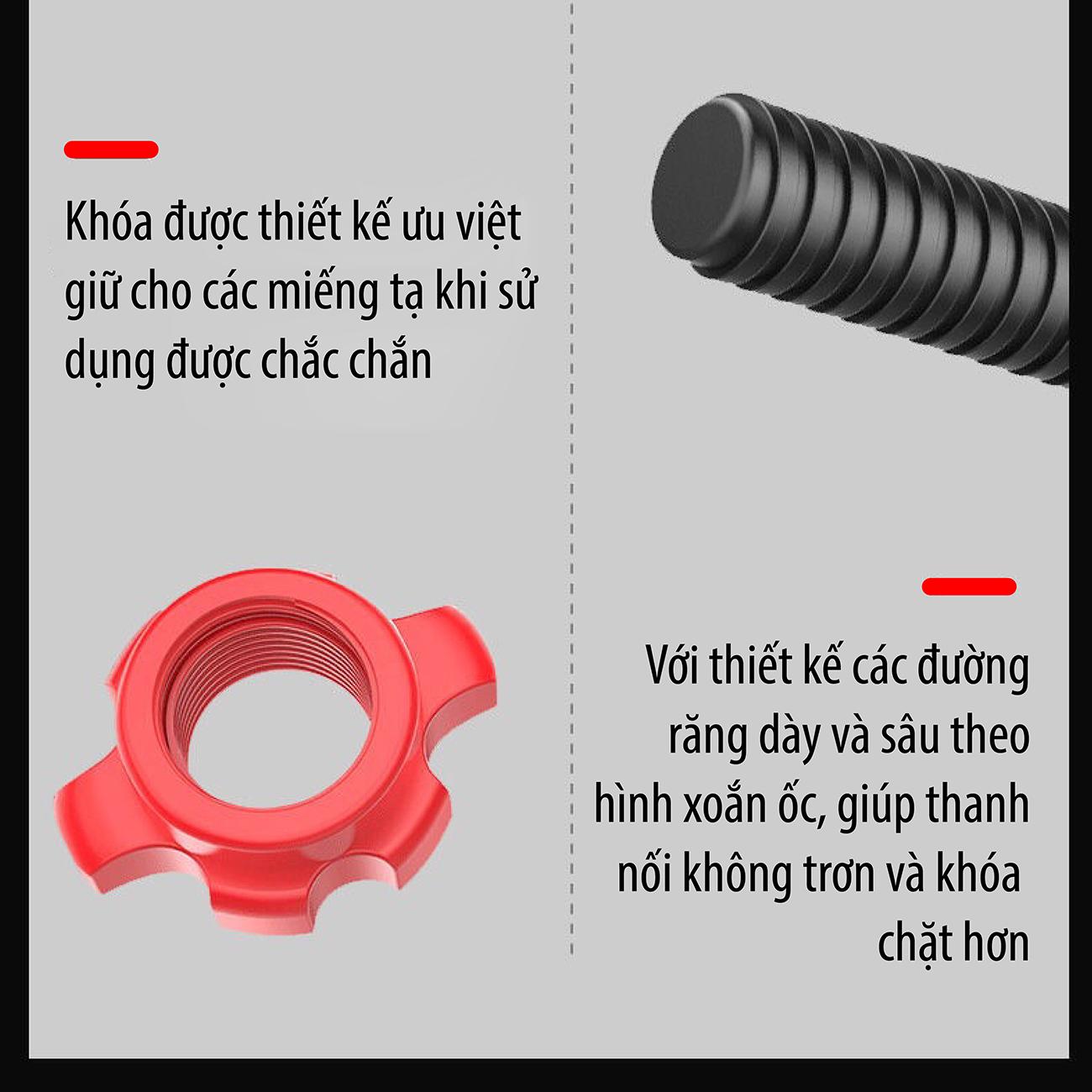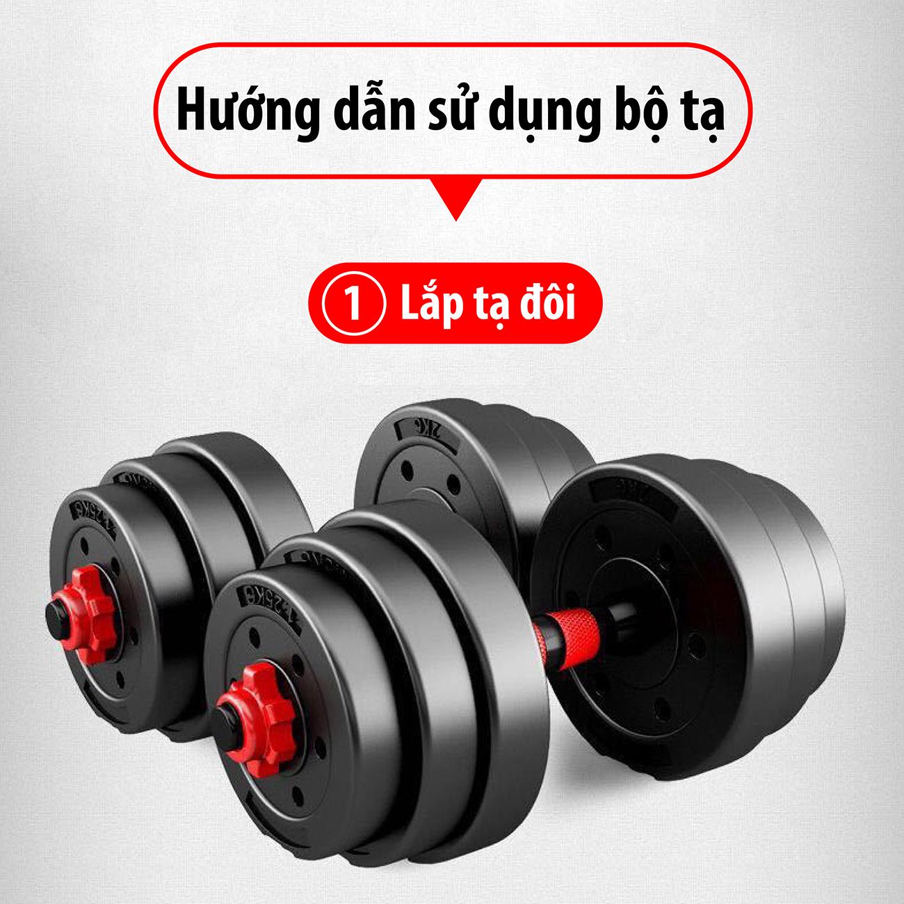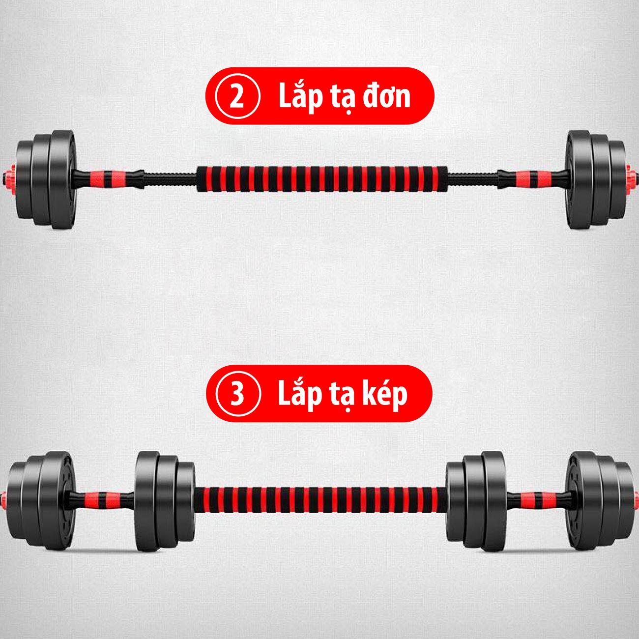 Tạ có thể tháo lắp dễ dàng để tăng hoặc giảm cân nặng phù hợp nhiều bài tập khác nhau.
