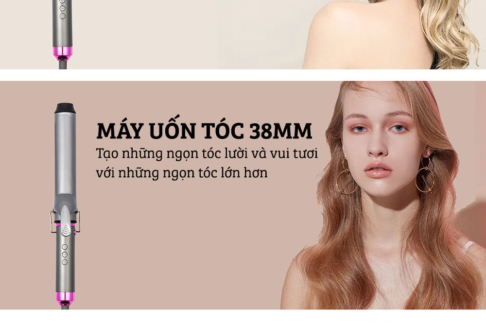 2. Kích Thước Đa Dạng: Máy đi kèm với các ống uốn và duỗi có kích thước khác nhau, từ 0.35 đến 1.25 inch và 0.5 đến 1.5 inch. Bạn có thể linh hoạt chọn kích thước phù hợp với kiểu tóc mong muốn.