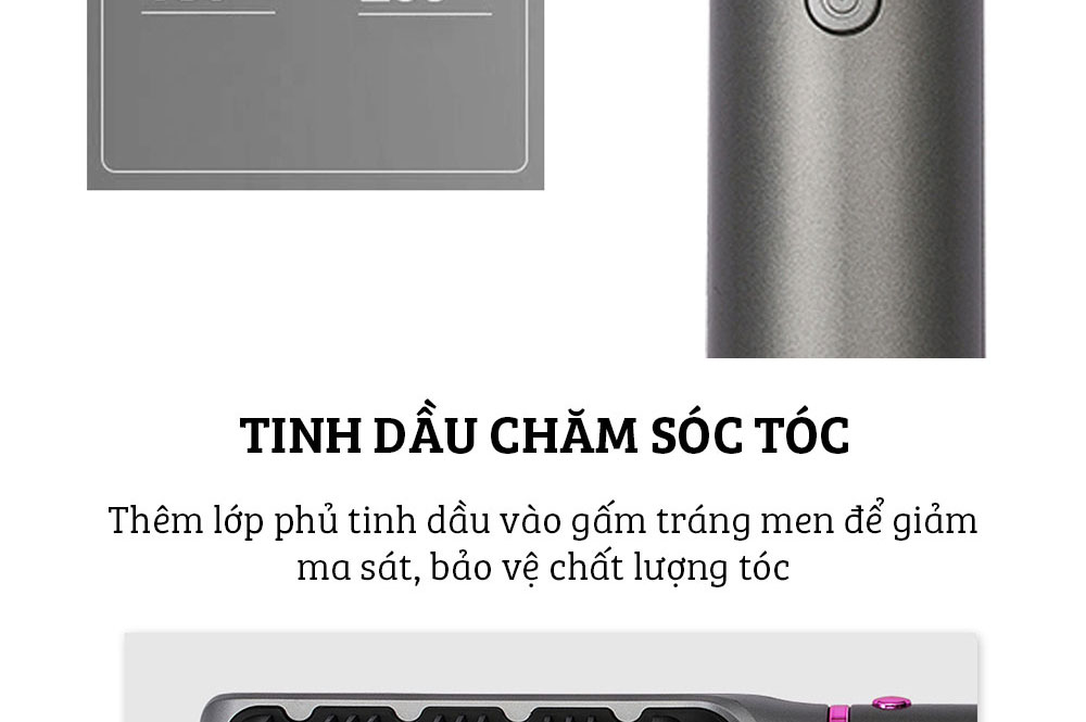 3. Bàn Chải Nhiệt Độ: Máy có bàn chải nhiệt độ giúp tạo kiểu tóc nhanh chóng. Công nghệ gốm giữ cho tóc bóng mượt mà không gây hại.