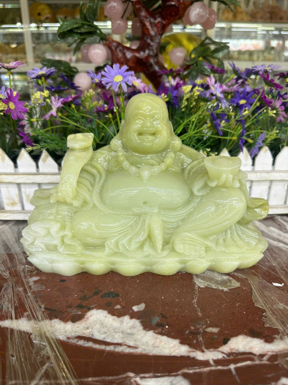 Giới thiệu Tượng Phật Di Lặc ngồi phong thủy đá ngọc Onyx đặt bàn làm việc - Dài 25 cm