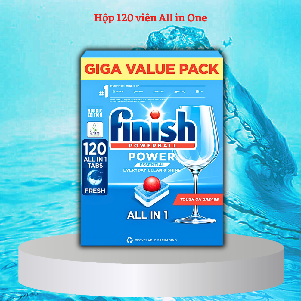 - Viên rửa chén Finish All In One 120 viên là dòng sản phẩm đạt chuẩn châu Âu