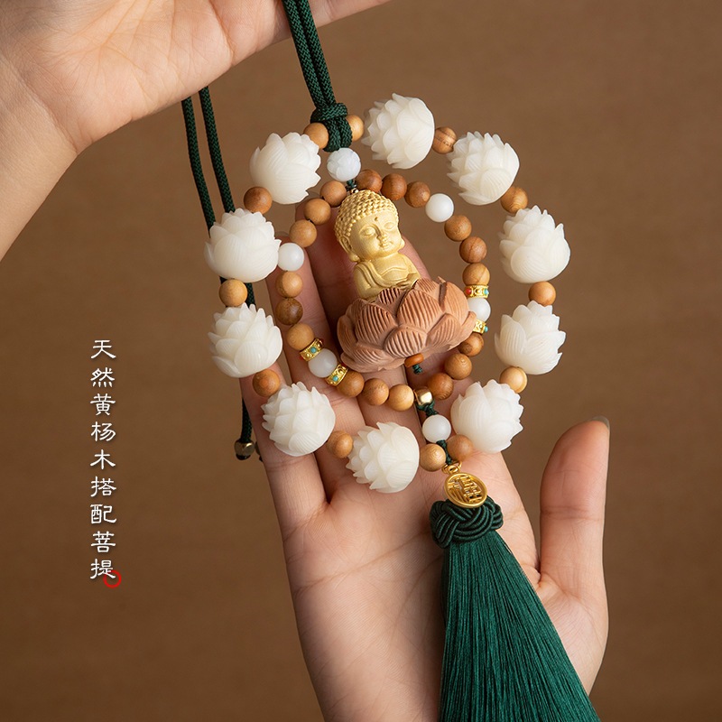 Khánh Quan Âm Liên Hoa Phong Thủy Trang Trí Ô Tô,Xe Hơi Mang May Mắn Và Tài Lộc Khánh Gỗ Hoàng Dương