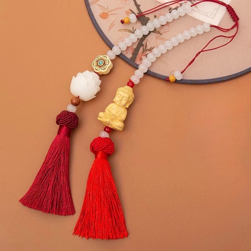 Bên cạnh đó, theo quan niệm phương Đông, dây treo xe ô tô càng có nhiều sợi tua rua sẽ càng "hút" may mắn, niềm vui và hạnh phúc về phía người sở hữu. Các chi tiết trang trí mang đậm tâm linh của sự an lành cũng giúp tài xế lái xe an toàn, chắc chắn hơn.