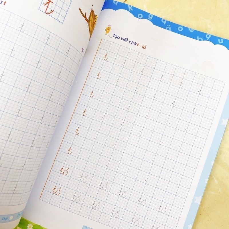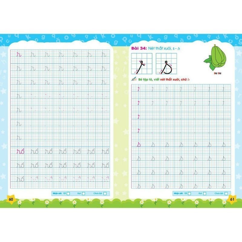 - Bé khởi đầu tập viết giúp bé làm quen với các nét viết cơ bản, tập tô viết theo những chữ mẫu có sẵn. Tập tô, tập viết chữ cái, chữ ghép, chữ số