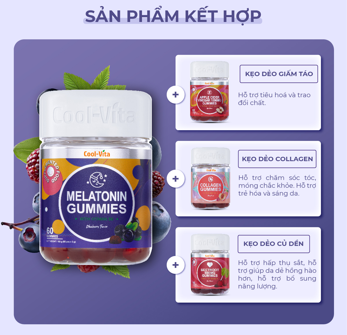 Combo 2 Hộp Kẹo Dẻo Melatonin Hỗ Trợ Giấc Ngủ Ngon Sleep Well Gummies & Hỗ Trợ Giảm Căng Thẳng Vị Việt Quất Kết Hợp Vitamin B6 Coolvita – (60 viên x 3g)/hộp