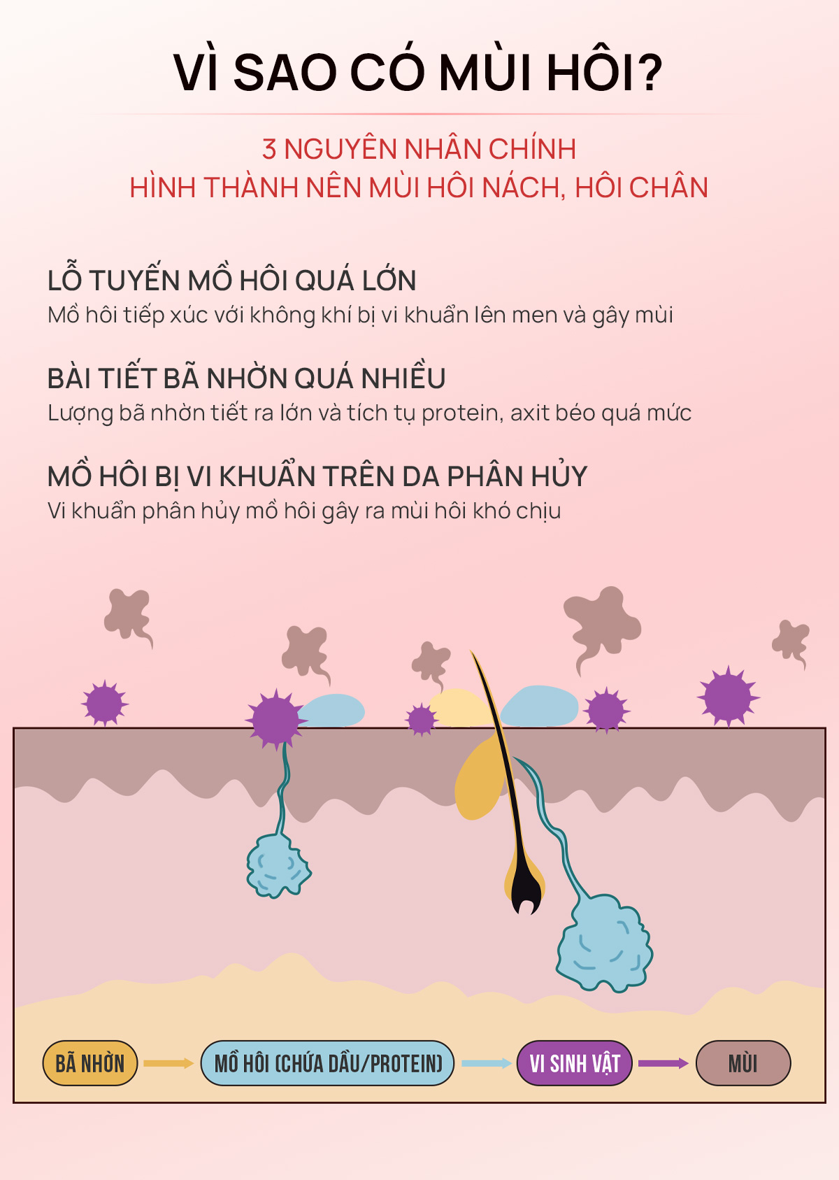 Mùi hương cơ thể đôi khi gây ra sự bất tiện đến hoạt động hàng ngày. Đặc biệt là ở những vùng cơ thể như nách hay lòng bàn chân khi mang giày dép, nơi tuyến mồ hôi hoạt động mạnh, vi khuẩn có thể phát triển và dẫn đến mùi hôi khó chịu.