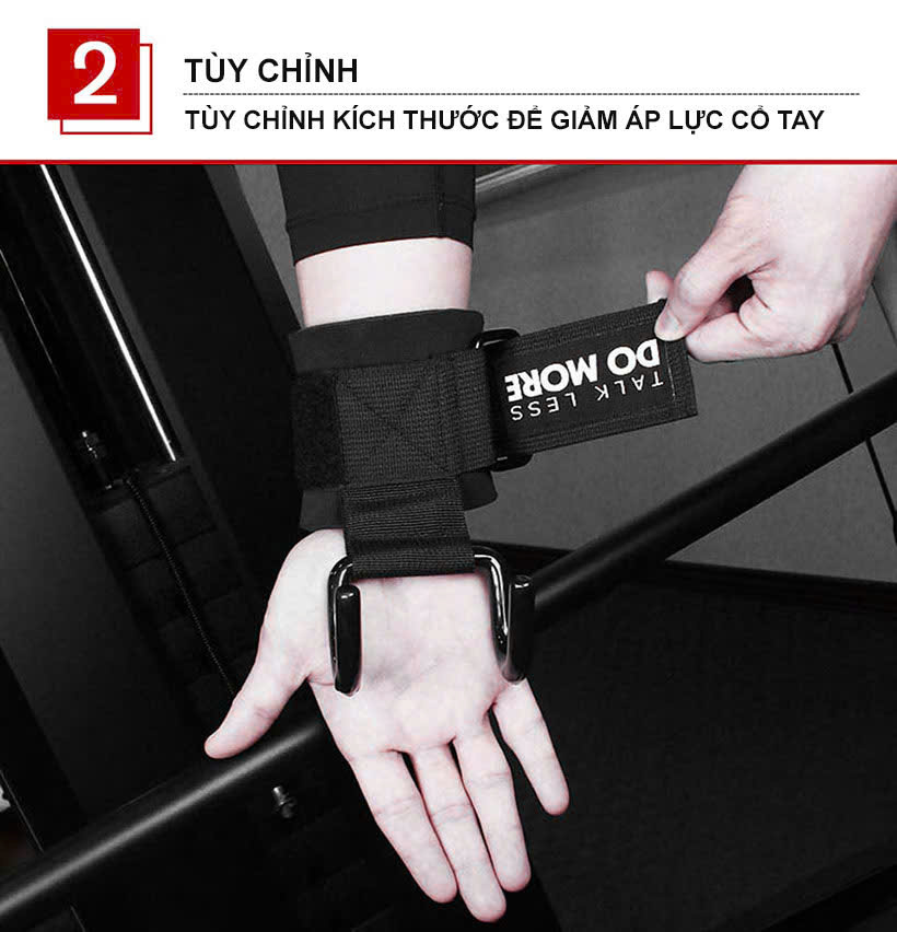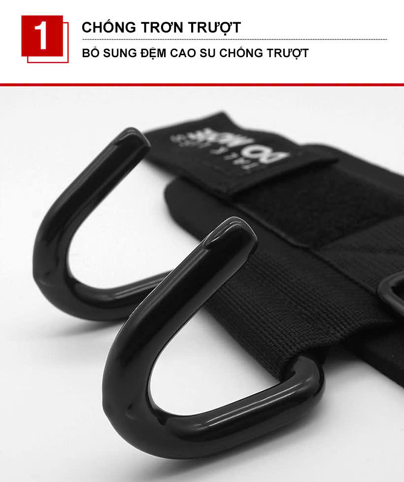 ✦ Quấn cổ tay kèm móc sắt hỗ trợ ngừơi tập trong các bài tập lưng như đu xà , kéo tạ....