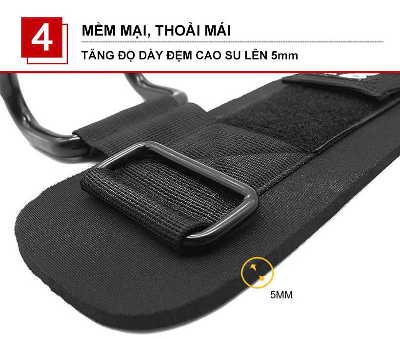 ✦ Chất vải dày dặn, móc làm bằng thép được sơn lớp chống gỉ, chống trơn trượt , cực kì chắc chắn giúp giảm lực tạ lên bàn tay và bám đòn tạ chắc chắn