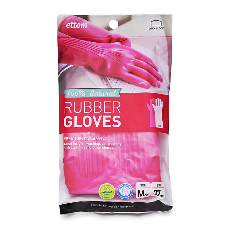 Găng tay cao su tự nhiên Lock&Lock ETM801P ETM802P, Hàng chính hãng, kích thước 37-39cm, hạn chế trơn trượt - JoyMall