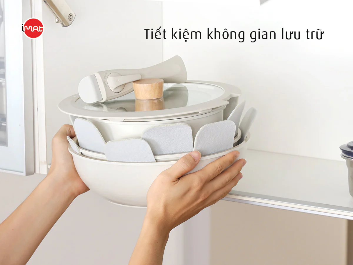 ️ Cán nồi/chảo: Làm từ nhựa Bakelite chịu nhiệt cao, có thể tháo rời, tiện lợi cho việc cất giữ tiết kiệm không gian.