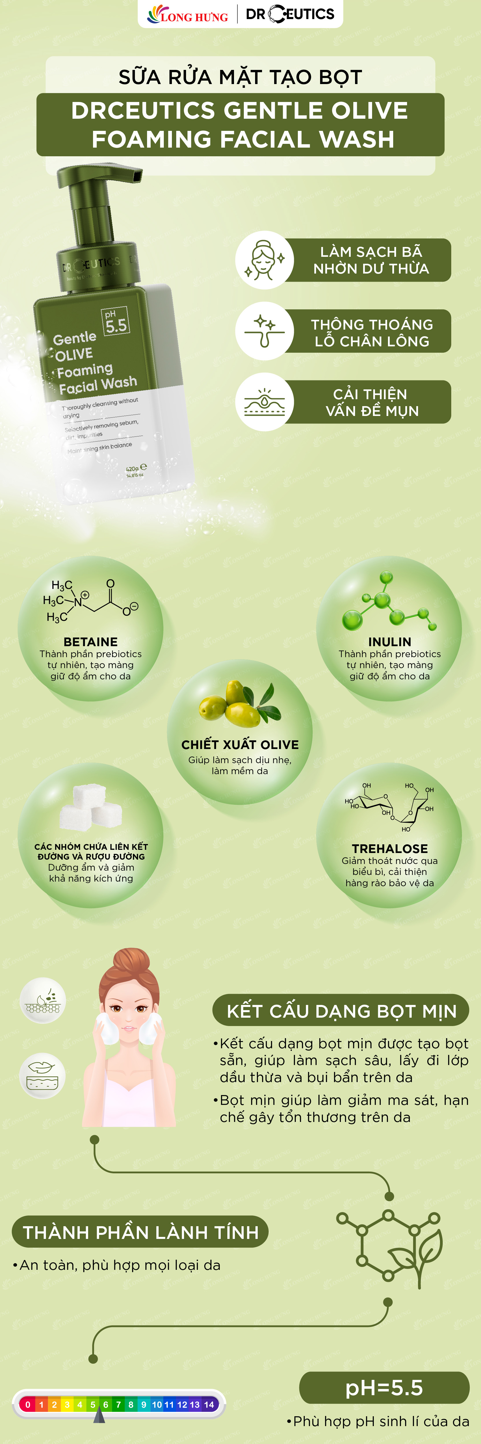 Mua Sữa rửa mặt tạo bọt DrCeutics Gentle Olive Foaming (420g) - Hàng chính hãng giá rẻ nhất ở đâu?Giới thiệu Sữa rửa mặt tạo bọt DrCeutics Gentle Olive Foaming (420g) - Hàng chính hãng