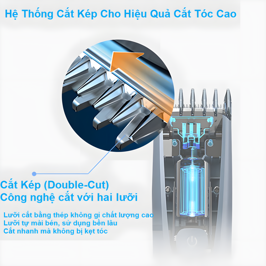 Trải nghiệm cắt tóc nhanh chóng với lưỡi dao kép sắc bén