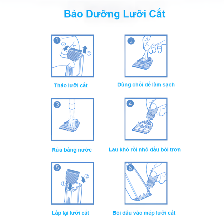* Bộ sản phẩm bao gồm: Thân máy, 1 cữ lược, dây sạc Type-C, chổi và 1 lọ dầu bôi trơn