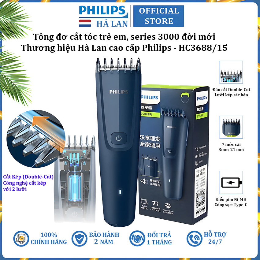 Tông đơ cắt tóc trẻ em series 3000 đời mới thương hiệu Philips HC3688/15 - Hàng chính hãng