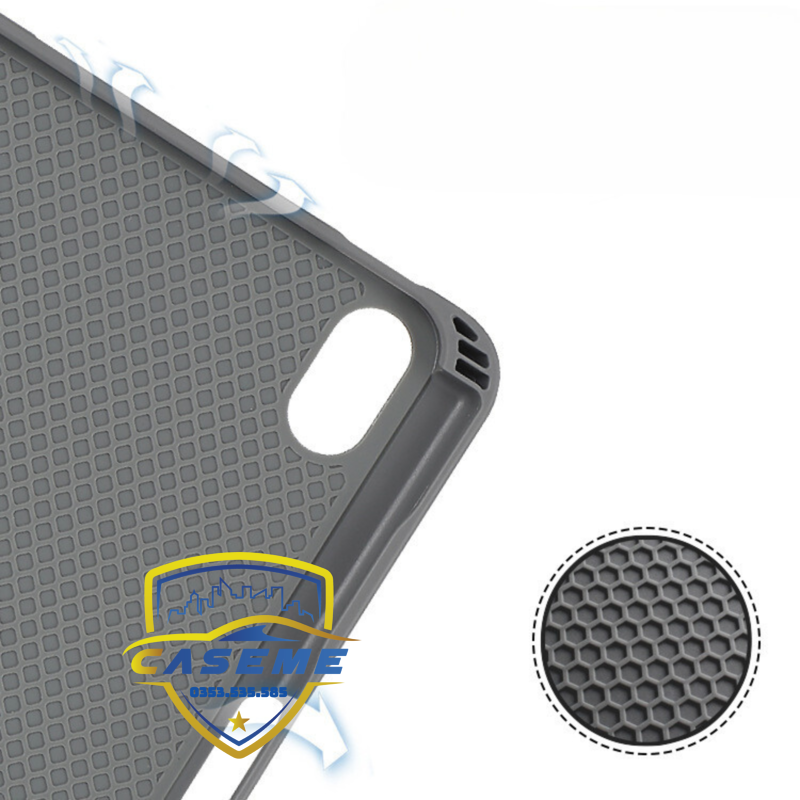 Khay đựng iPad được làm bằng TPU mềm giúp dễ tháo lắp, mặt dưới của ốp lưng được thiết kế với các rãnh thoát nhiệt giúp bạn yên tâm sử dụng Ipad với bao da mà không lo nóng máy