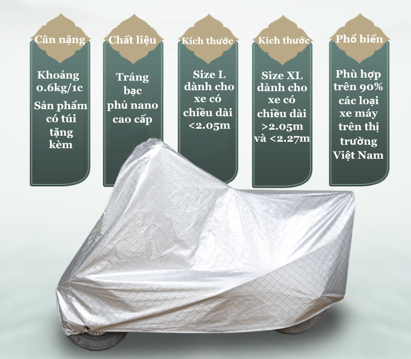 Ưu điểm và tính năng vượt trội của Bạt Trùm Xe Máy Tráng Bạc Che Mưa Nắng