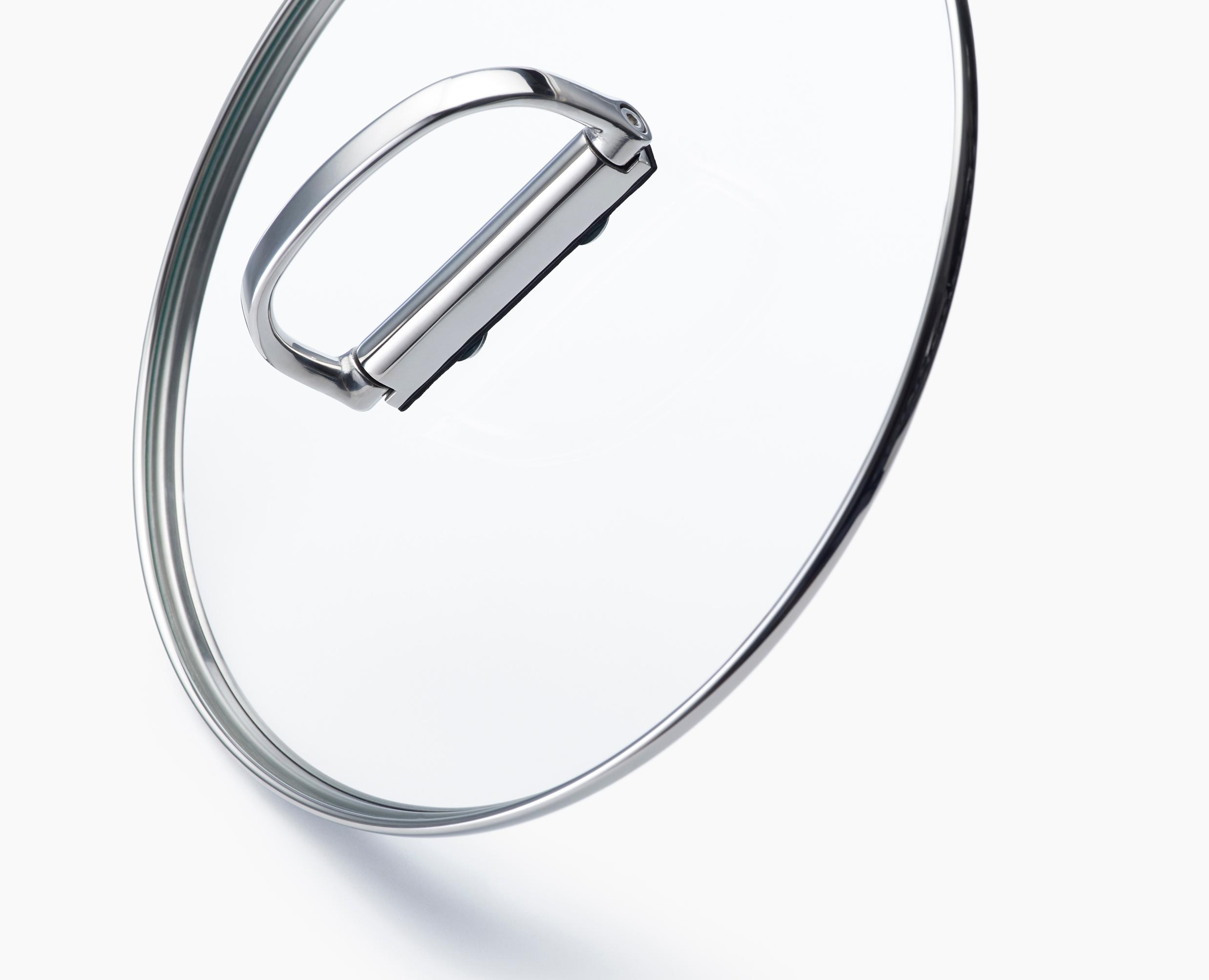 Có nắp kính cường lực và tay cầm bằng thép không gỉ có thể gập lại.