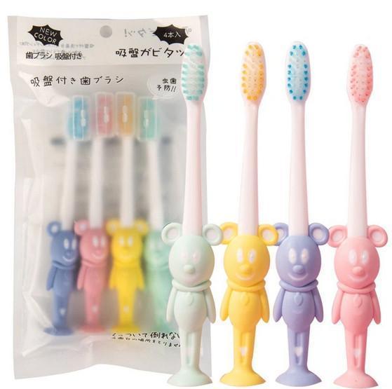 Set 4 bàn chải hình thú xuất Nhật cho bé với 4 màu khác nhau, phù hợp
