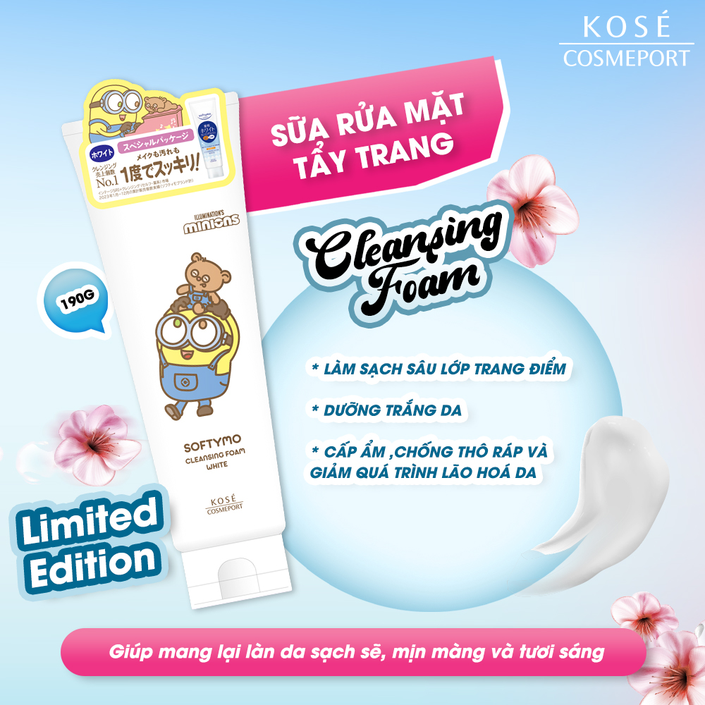 Sữa Rửa Mặt Tẩy Trang Dưỡng Trắng Da Kose Softymo Cleansing Foam 190 G - Phiên Bản Giới Hạn Minions