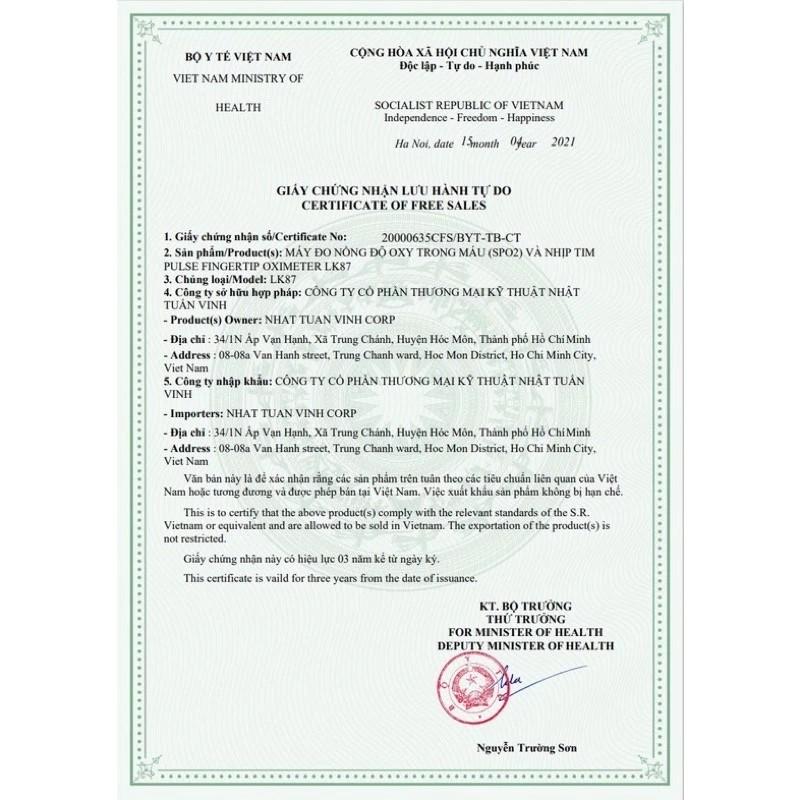 | Quy cách đóng gói | Công dụng Máy Fingertip Pulse Oximeter LK87 đo nhịp tim và đo nồng độ oxy trong máu (SpO2) Kết quả nhanh chóng, độ chính xác cao Xem rõ kết quả trên màn hình led Sử dụng dễ dàng, chỉ cần kẹp máy vào 1 ngón tay. Không xâm lấn, không gây đau, không khó chịu Thiết kế nhỏ gọn, dễ dàng mang theo khi cần thiết Hoạt động bằng pin AAA, Thiết kế phù hợp cho cả người lớn và trẻ em. Sử dụng ngay tại nhà hay các cơ sở y tế. Cách sử dụng Lắp pin theo đúng chiều âm (-) dương (+) Kẹp 1 đầu ngón tay (lưu ý không sơn móng tay) trong khoảng 10 giây. Nhấn nút nguồn. Sau 10s, kết quả hiển thị trên màn hình: SpO2 là nồng độ oxy trong máu, chỉ số còn lại là nhịp tim. Với SpO2 trên 96% và không có bệnh lý nền thì ổn. Nhịp tim giao động từ 60-90 lần/phút Tắt thiết bị sau khi dùng. Bảo quản nơi khô ráo, tránh xa tầm tay trẻ em.