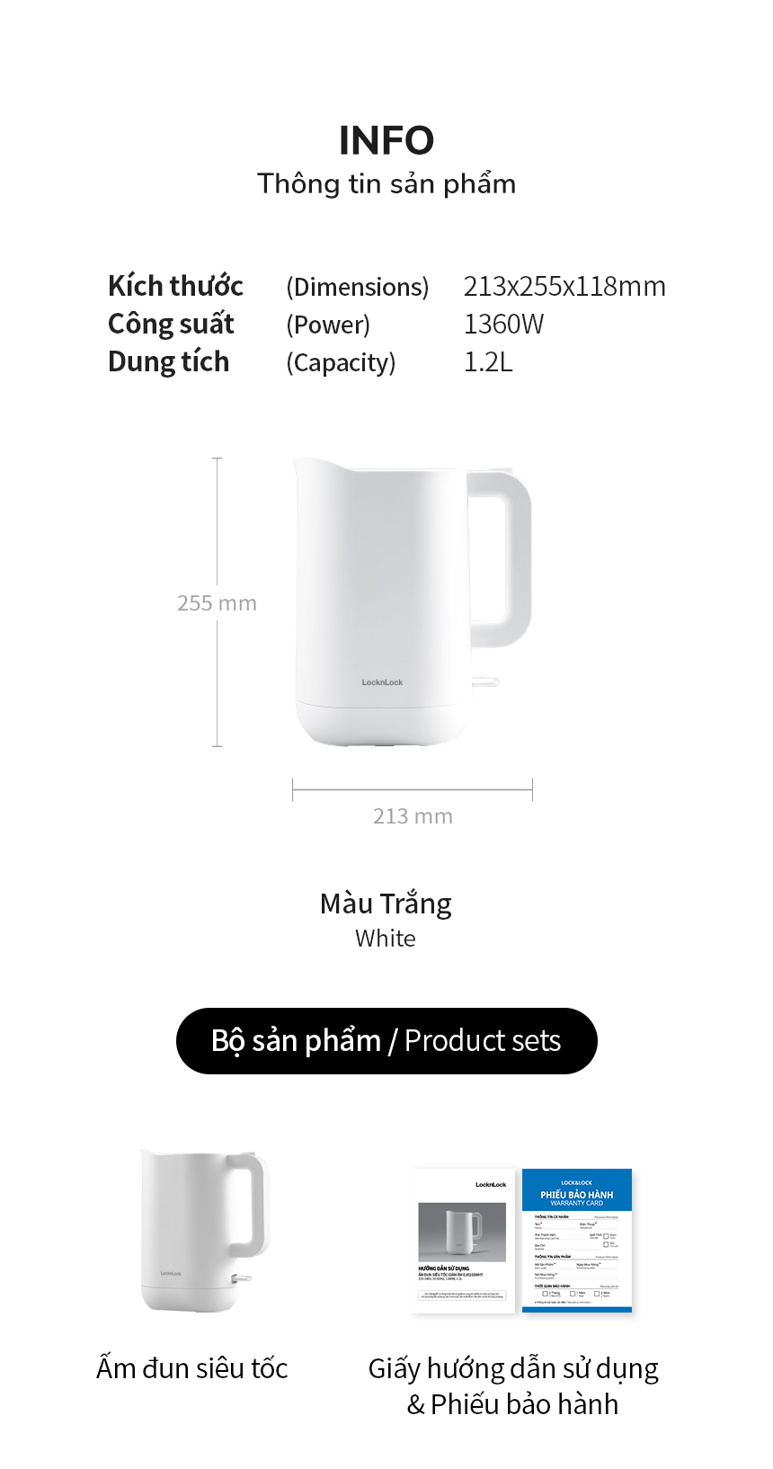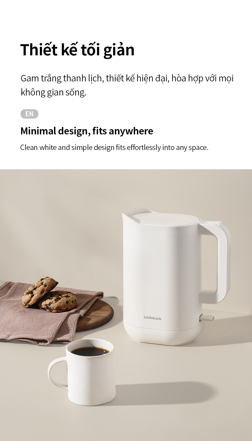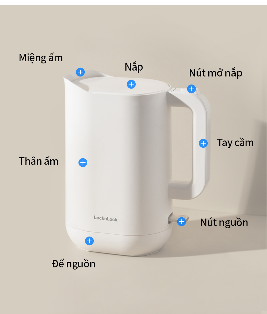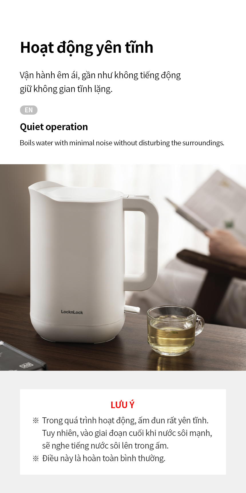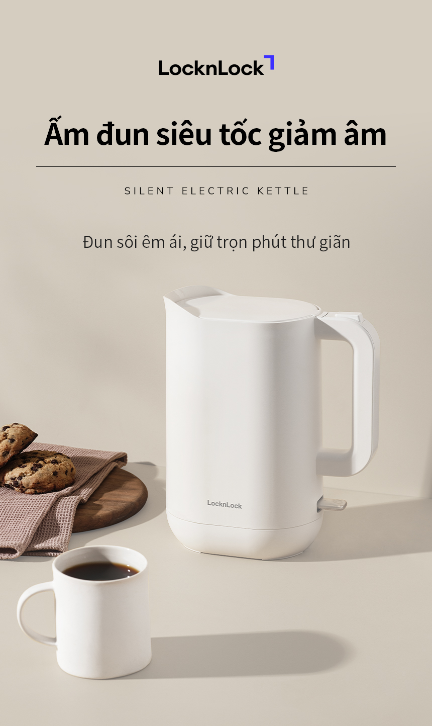 Ấm Đun Siêu Tốc Giảm Âm LocknLock Silent Electric Kettle 1.2L EJK216WHT, Hàng Chính Hãng - JoyMall