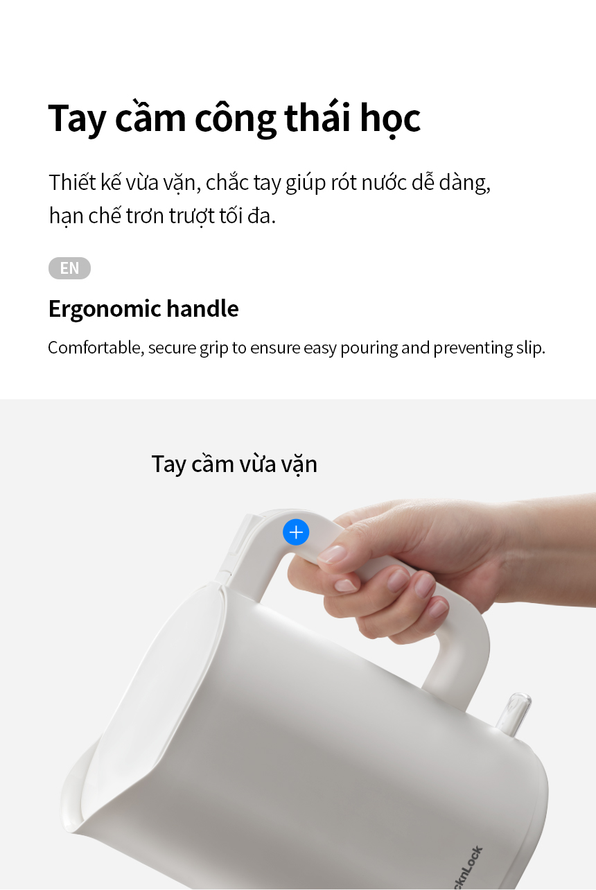 TAY CẦM CÔNG THÁI HỌC: Thiết kế vừa vặn, chắc tay giúp rót nước dễ dàng, hạn chế trơn trượt tối đa