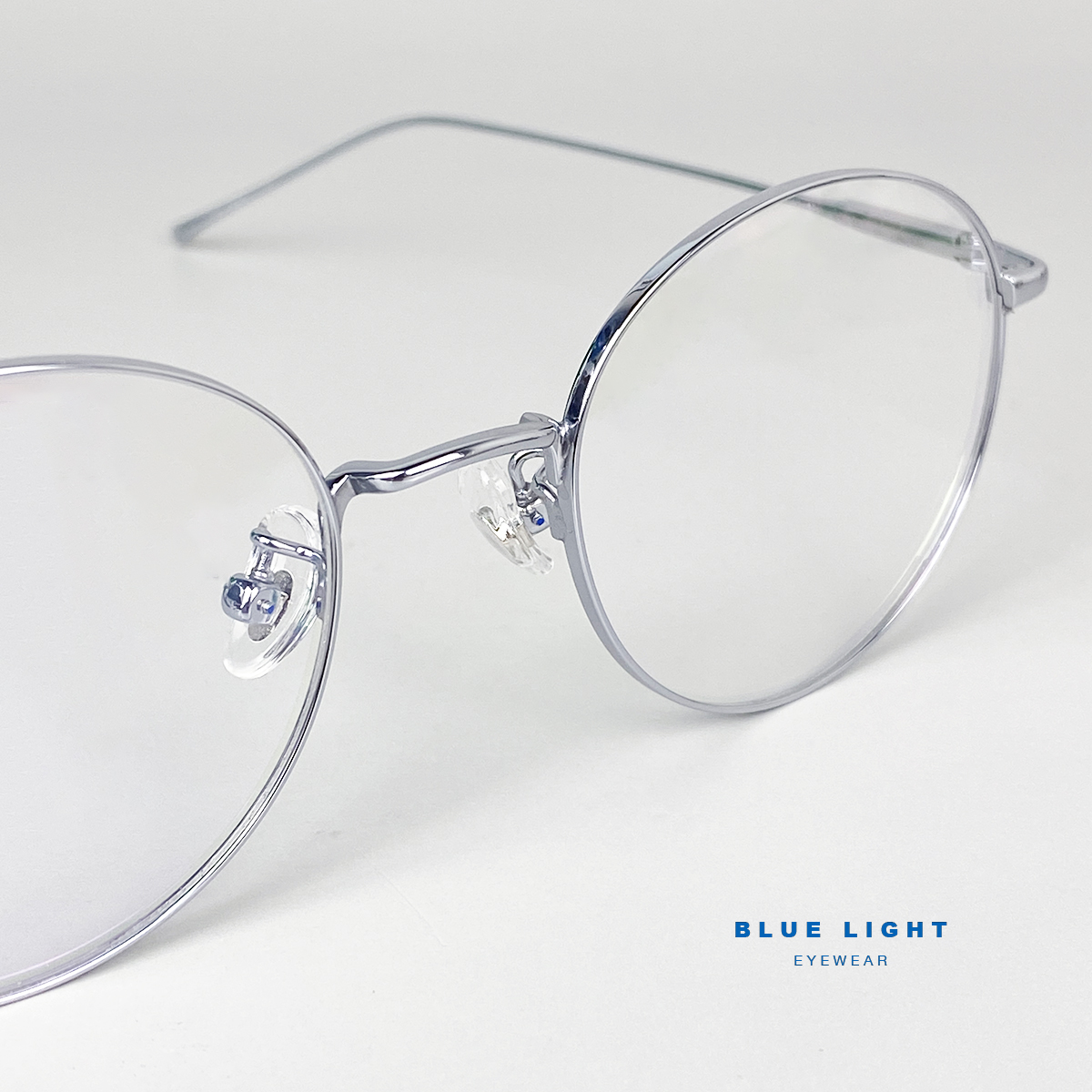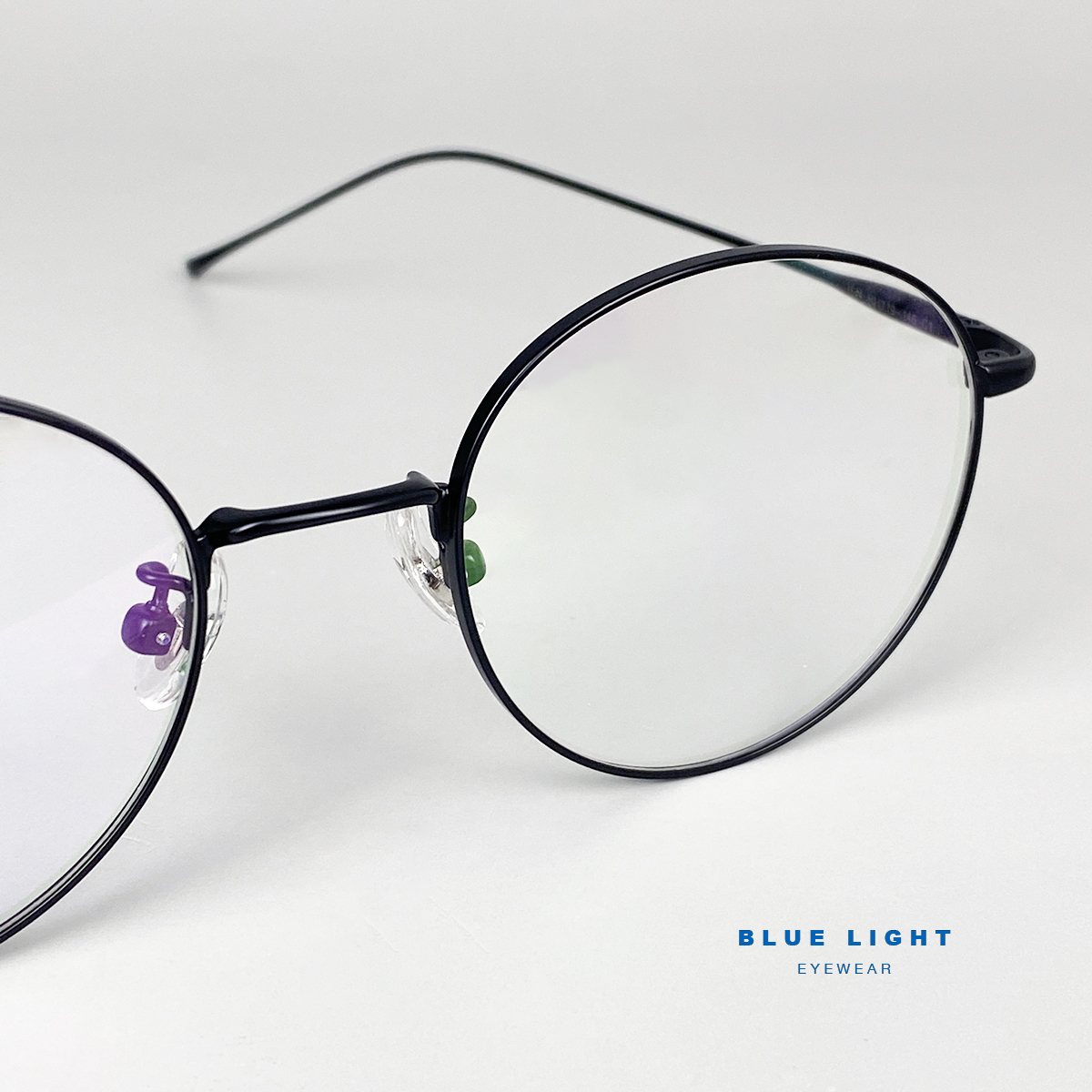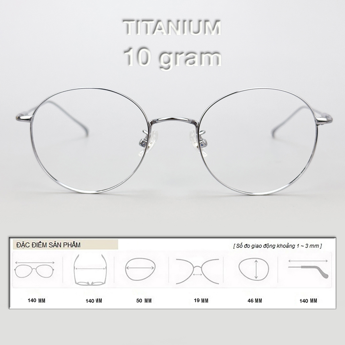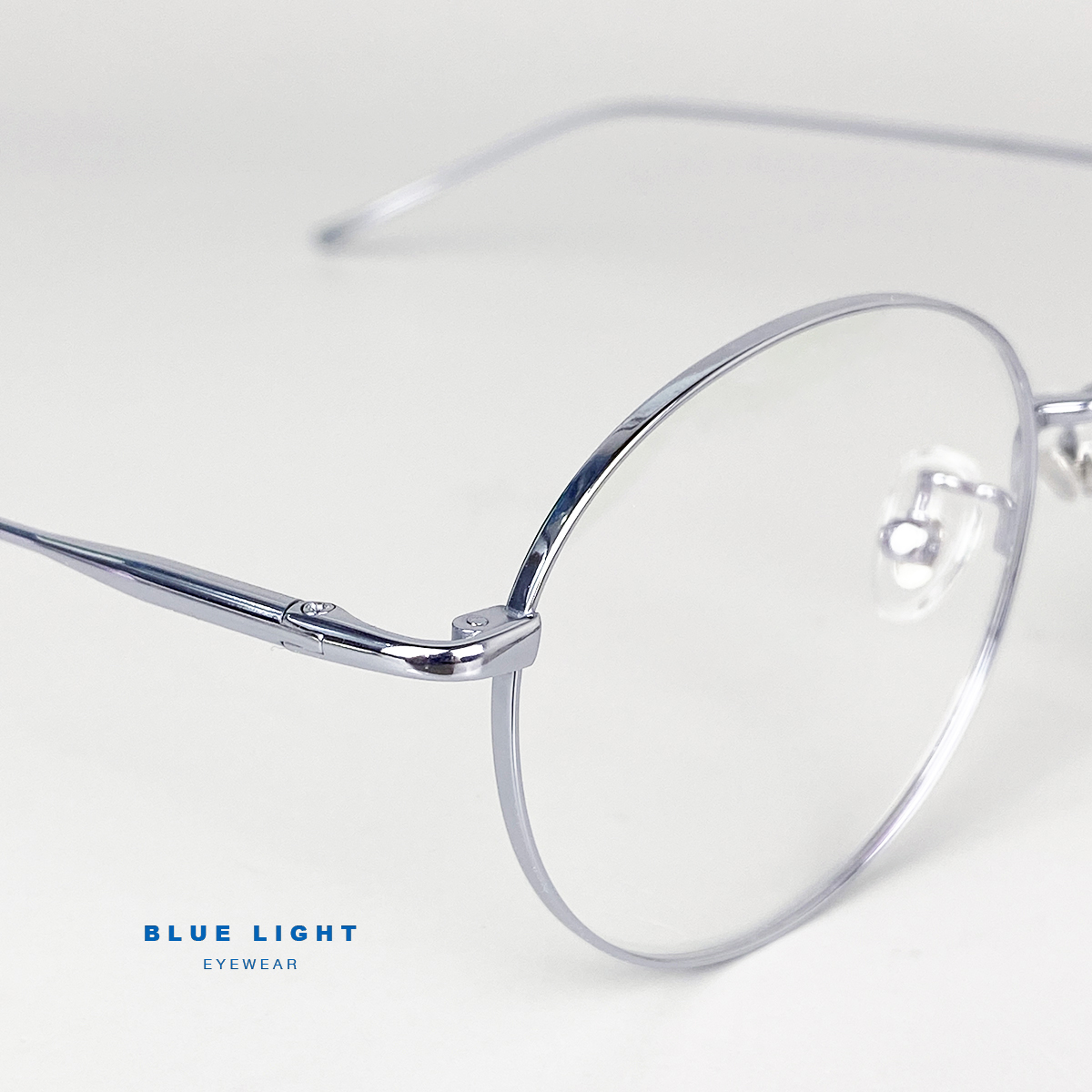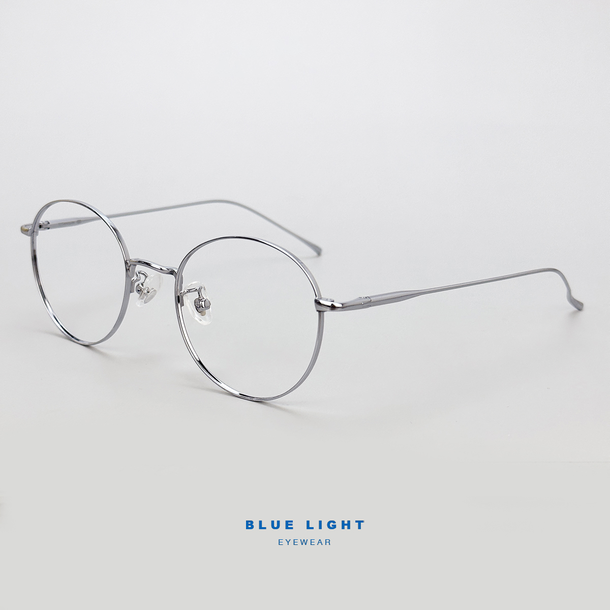 Gọng Kính Cận, Kính Giả Cận Nam Nữ TITANIUM Cao Cấp Siêu Nhẹ, Mắt Tròn Siêu Mảnh, Full Đen Bạc - BLUE LIGHT