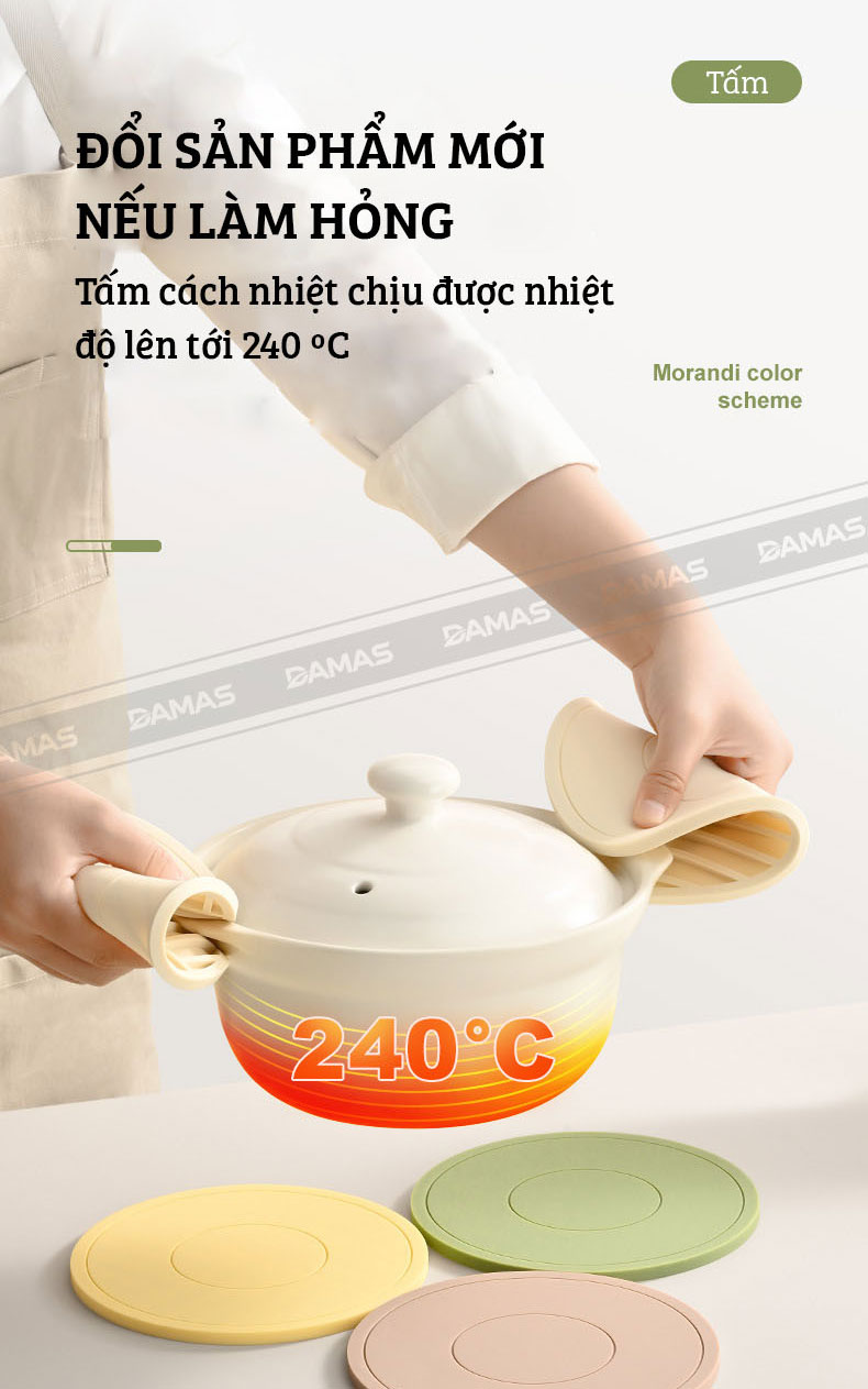 Chịu nhiệt độ cao lên đến 230°C – sử dụng an toàn trên bếp từ, lò vi sóng, hoặc để cách nhiệt khi đặt nồi nóng ra bàn.