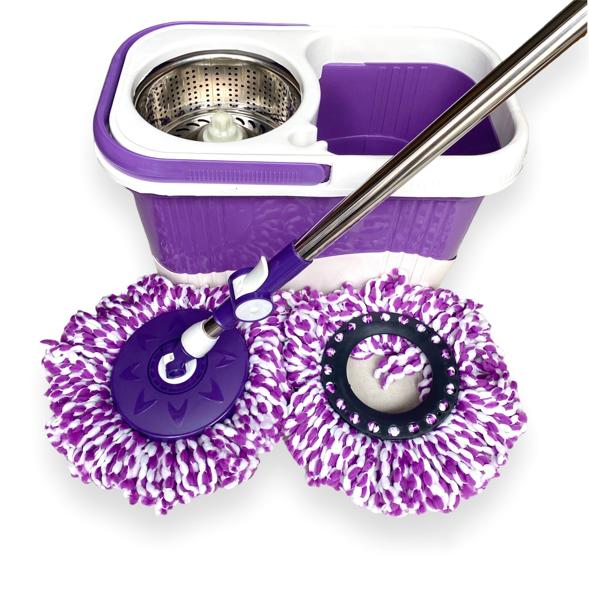 - Bên trong thùng giặt có 1 lồng vắt bằng inox chống han gỉ và giúp dễ dàng vắt khô nước của bông lau nhờ cơ chế vắt ly tâm và thiết kế lỗ thoát tiện dụng.